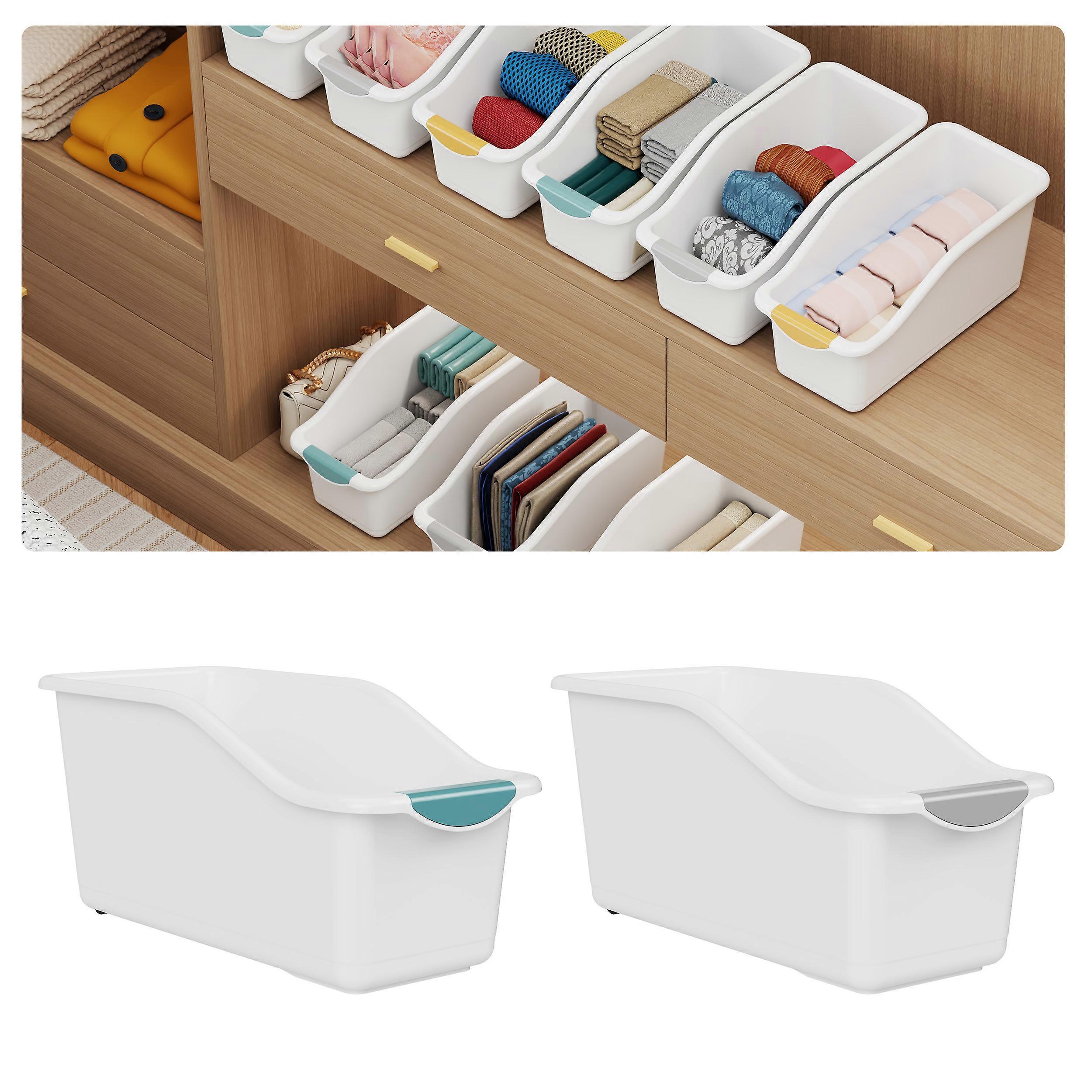 2pcs Curved Design Storage Boxes - Heavy-Duty Plastic Organizer, White Space-Saving Container for Under Sink, Pantry & Cabinet