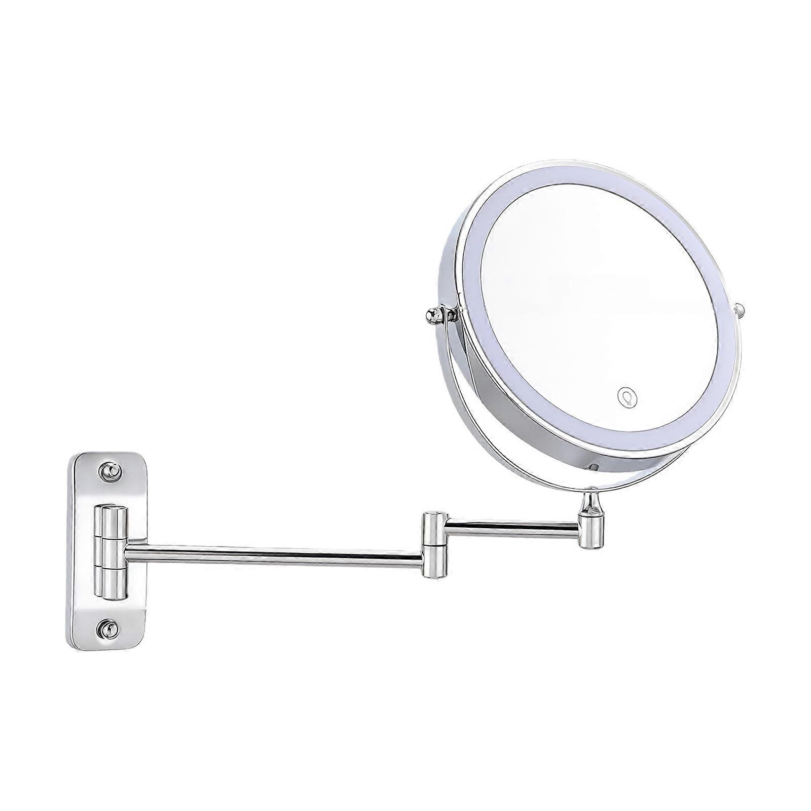 Metal Constructed Folding Makeup Mirror Has Magnification and Normal Integrated Three Color Lights 360 Adjustable Stand chrome