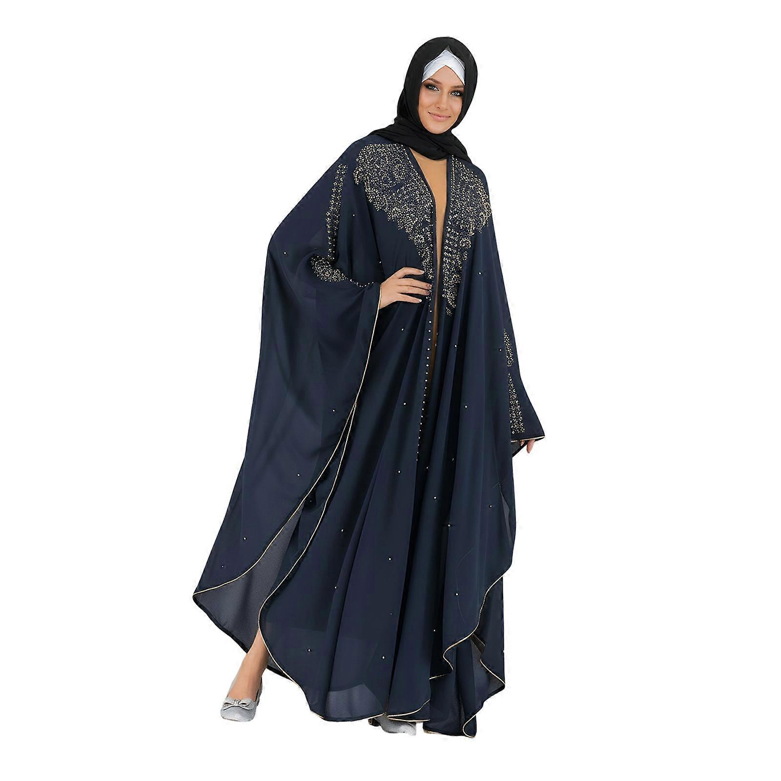 Women's Rhinestones Beaded Hooded Long Robe with Batwing Sleeves 153cm Shoulder Width for Elegant Occasion Polyester ZQ