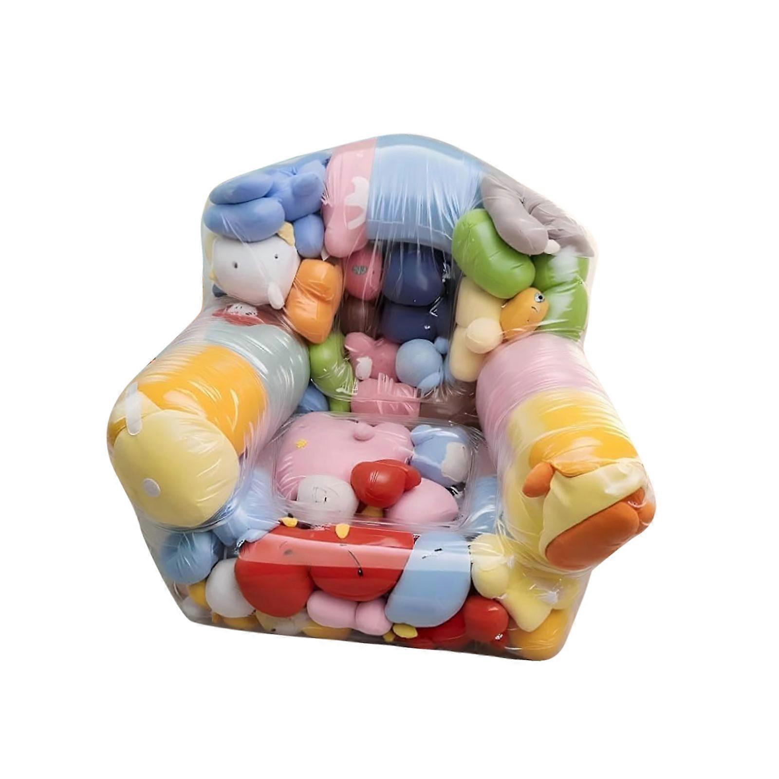 Features: This transparents stuffed toy storage chair serves as a creative purpose solution, transforming into a comfortable bean bag seat while efficiently organizing over 100 plush in its large 105x90x90cm size, perfect as a space saving bean bag organizers for kids' rooms. Crafted from , thickened transparents PVC materials, it features a double closure, raised sides, and a concave center design to prevent falls and make sure waterproof, easy access storage for soft items like blankets. Ideal for children and parents, this kids toy storage chair helps youngsters develop tidying habits by encouraging to store unused themselves, making it a fun educational tool for family use. Perfect for playrooms or bedrooms, kids can sit on this bean bag chair while reading or playing, and it doubles as a transparents organizers for pillows, blankets, or old clothes to keep spaces tidy. Fostering organization skills early on, this transparents storage chair saves space and adds playful charm to any child's area, allowing quick visibility and retrieval of favorite stuffed animals. Specifications: Product materials: PVC Product size: 105x90x90CM Larger dolls (40cm) can be stored inside, and the capacity is about 12. Package Includes: Plush toy storage chairx1 note: Before using the accessory, please check if it is compatible. Pay attention to the storage methods.