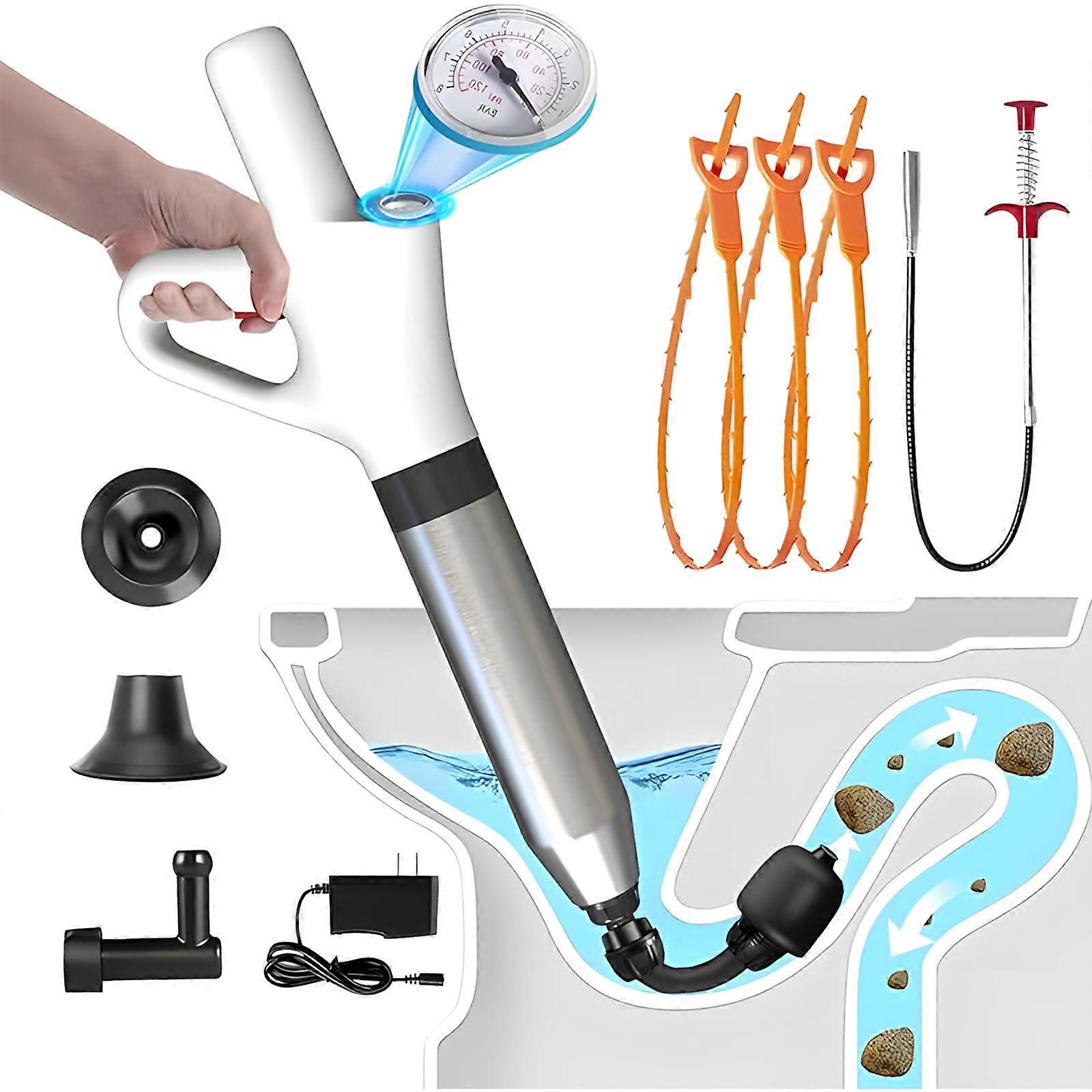 Features: Cost Effective Solutparticlemail: Our air powered drain opener furnishes a efficient way to clear toilets lacking expensive piping services. Ergonomic Sports car Complex Pipesecond: Constructed to tackle SECOND molded and narrow conduits effortlessly, this plunger resolves difficult reach obstructs with minimal effort, suitable for various toilet and drain varieties. Friendly & Permanent: Constructed of strong, oxidation immune polystyrene for extended use, reducing frequent replacements. Compact & Space Savsinging: Smooth plan allows easy storage in small bathrooms, addressing large tool concerns. Live Pressure Gaugemail: Features a constructed in pressure measure for precise ventilation during inflation, stopping sprays otherwise damage from excessive force. Works lacking electricity for friendly action. Specifications: Substancemail: Metal, strong and permanent, capable endure stress dredging operations. Dimensionsecond: Lengthelhello: 22.5in Propertiesecond: green, white, gray Technical parametersecond: Adopt advanced mechanical technology to secure efficient dredging ability, denial need for electric operate, environmental security and resource conservation. Utilization scenarinonbeing: Daily maintenance of family bathrooms, suitable for severely clogged toilet conduits, and quickly recover normal effluent function. Package Includes: Toilet pipe unblocker body×1 Metal handle×1 Replaceable suction cup head (large size) × 1 Replaceable suction cup head (small size) × 1 Chinese and English bilingual instruction manual×1 note: Pay attention to the storage methods.
