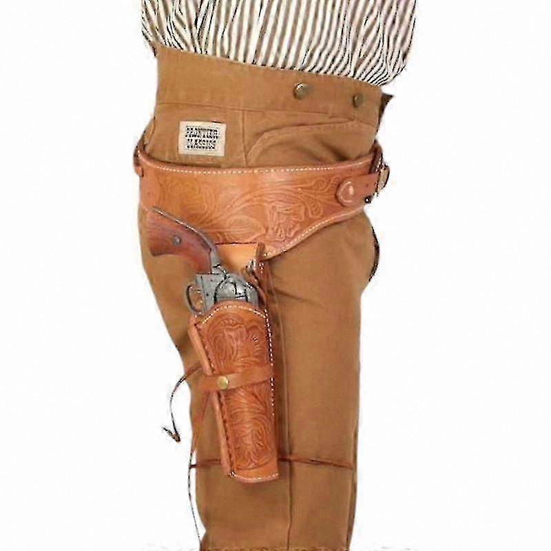Leather Gun Holster with Belt for Revolvers, Compatible with 6-9 Inch Barrel and Multiple Calibers Including .22, .357, .44, .45
