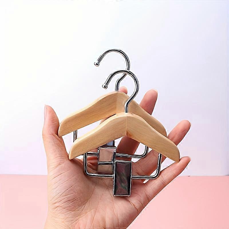 Mini Wooden Hangers with Stainless Steel Clips - Space-Saving Organizer for Pet Clothing & Accessories,Ideal For Small Items