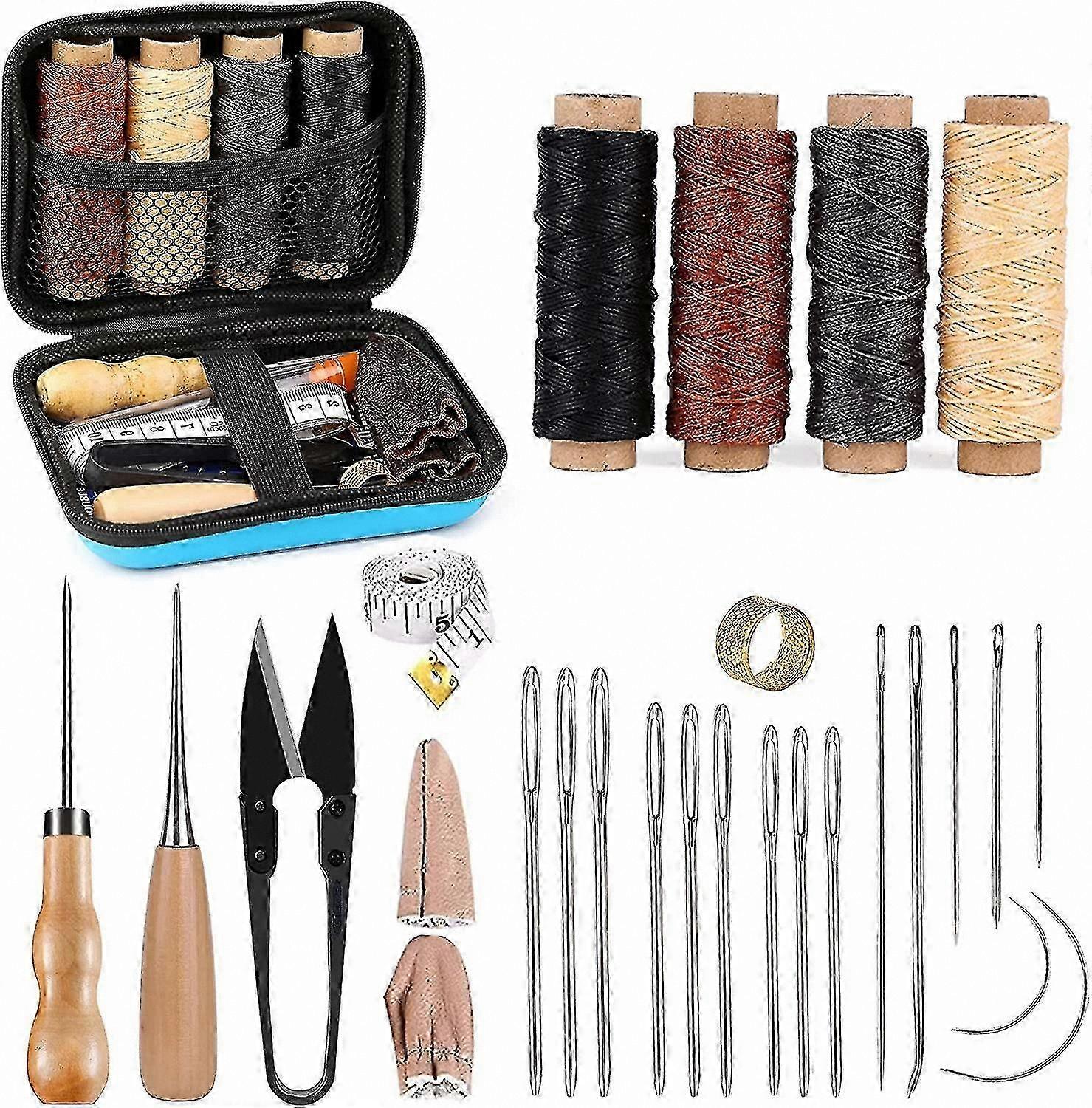 Crafting Sewing Kit with Large-Eye Needle, Waxed Thread for Upholstery Repair Tools