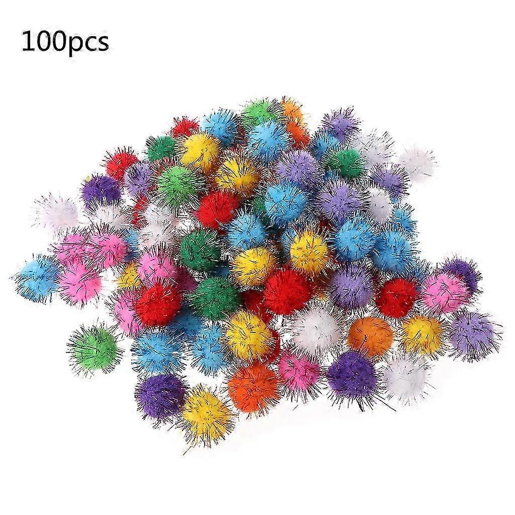 100Pcs 25mm Fluffy Glitter Pom Poms for Kids Crafts