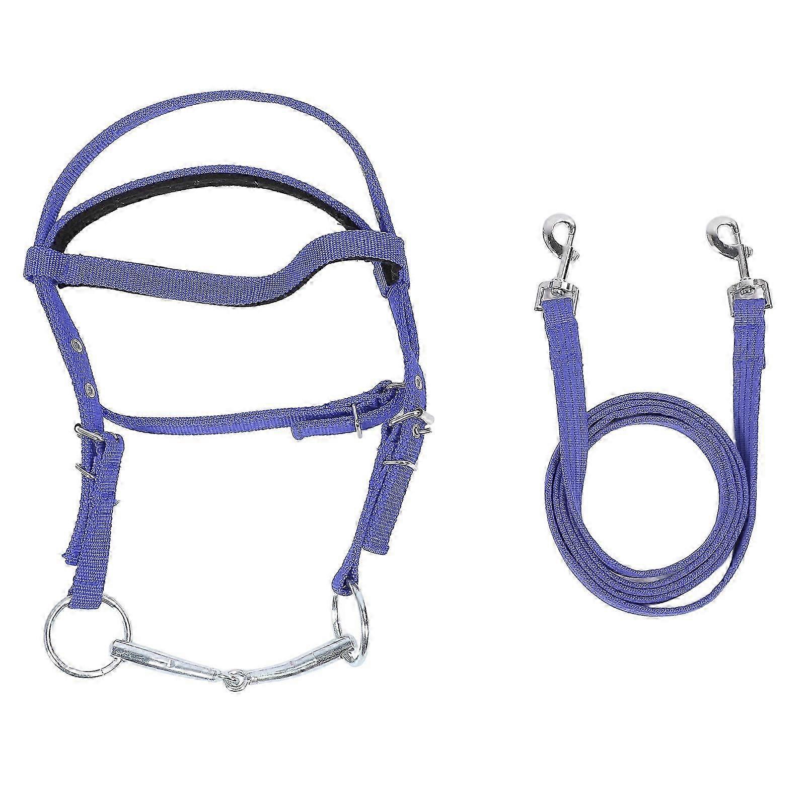 Large Blue Adjustable Nylon Horse Halter Bridle with Lead Rope