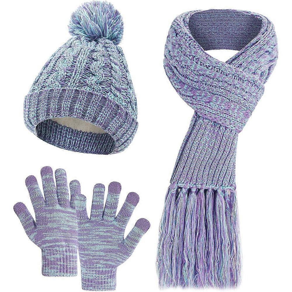 Womens Beanie Winter Hats 3 in 1 Knit Warm Hat Gloves and Scarf Set Women Scarves for Cold Weather