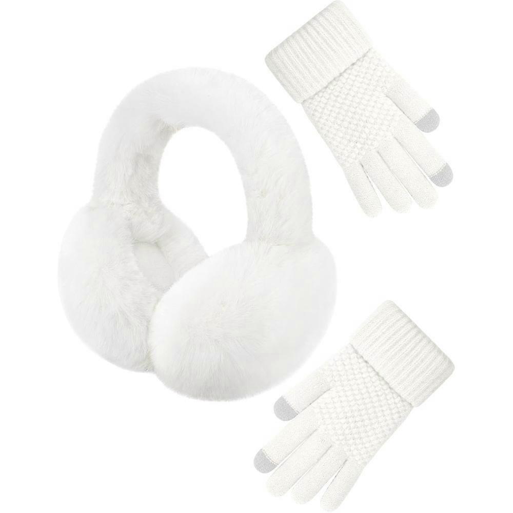 Senker Fashion Winter Ear Muffs Gloves for Women Foldable Warm Earmuffs Faux Fur Fluffy Warmers Covers Headband Cold Weather