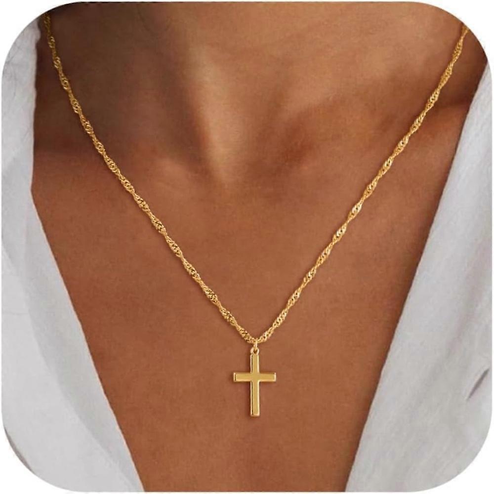 Cross Necklace for Women Dainty 14K Real Silver Gold Plated Layered Cross Pendant Necklace Stack Simple Trendy Cute Charm Choker
