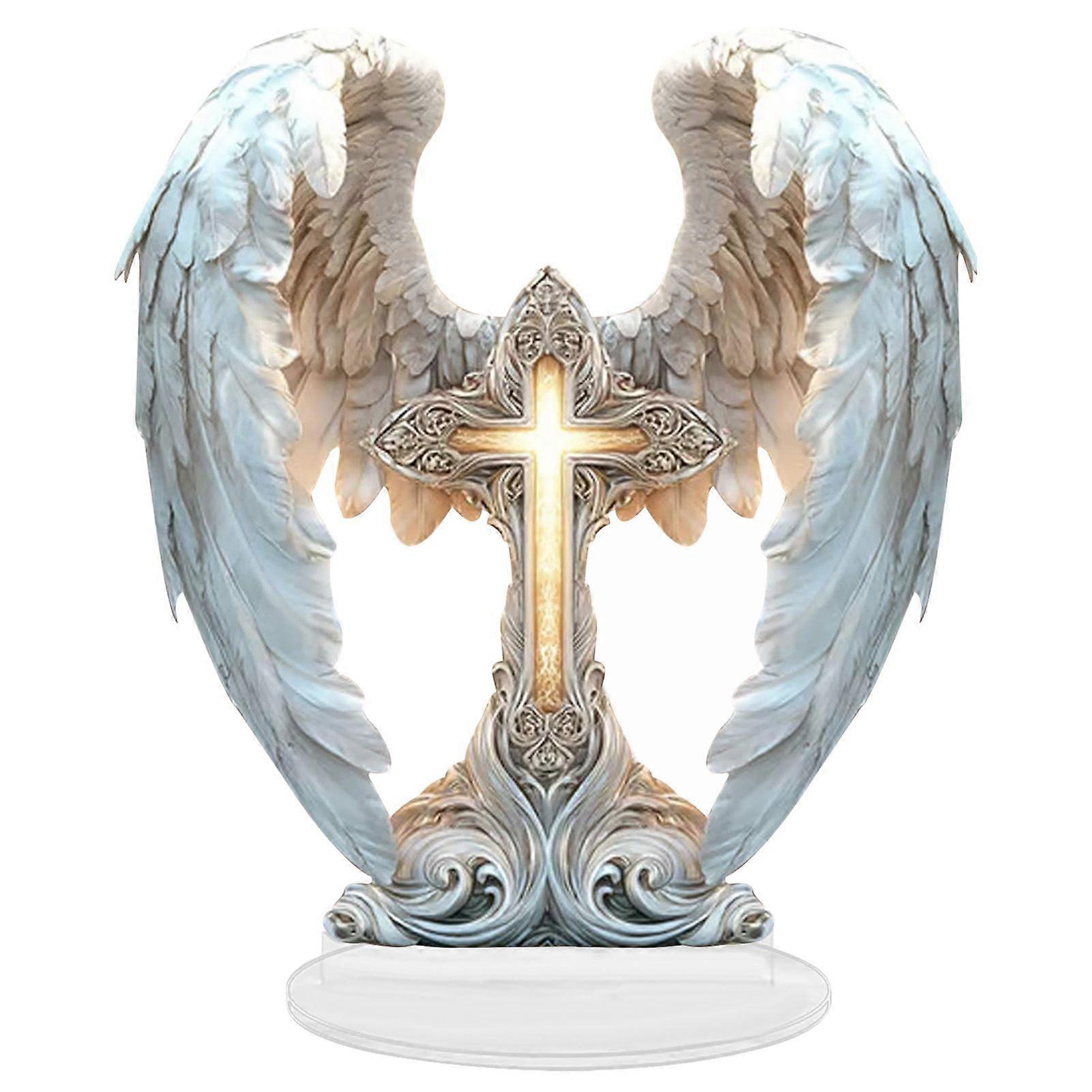 Qinghai 2D Flat Table Sign Acrylic Prayer Wings Angel/Fairy/Nativity Scene Desktop Ornament for Tabletop Shelf Mantel Decor