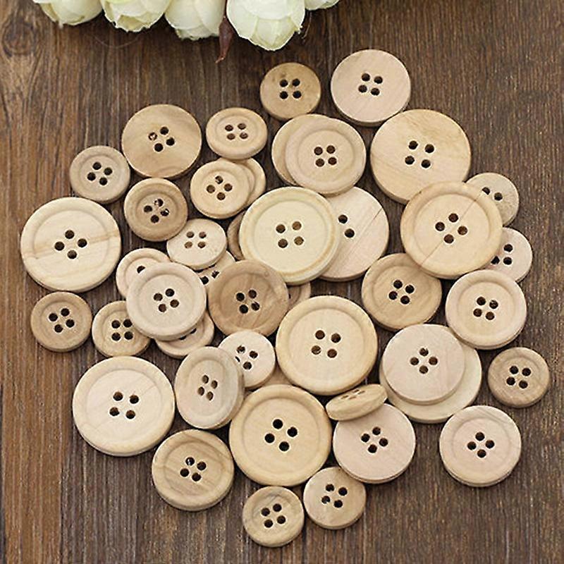 50 Pcs Wooden Buttons Natural Color Round 4 Holes Buttons Sewing Scrapbooking Home DIY Sewing Accessories 15/20/25mm