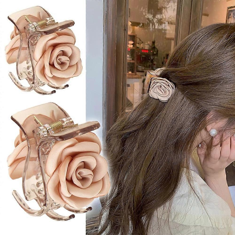 3 Pack Hair Clip Small, 1.61 Inch Flower Hair Claw Clips for High Ponytail, Shark Rose Hair Clips Travel Beach Birthday Day