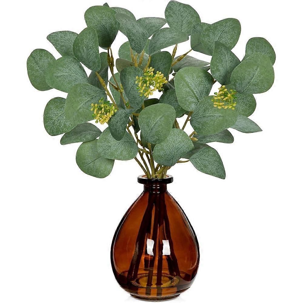 Artificial Eucalyptus Stems in Glass Vase with Faux Water, 13" Fake Plant Eucalyptus Leaves Greenery for Table Centerpiece Offic
