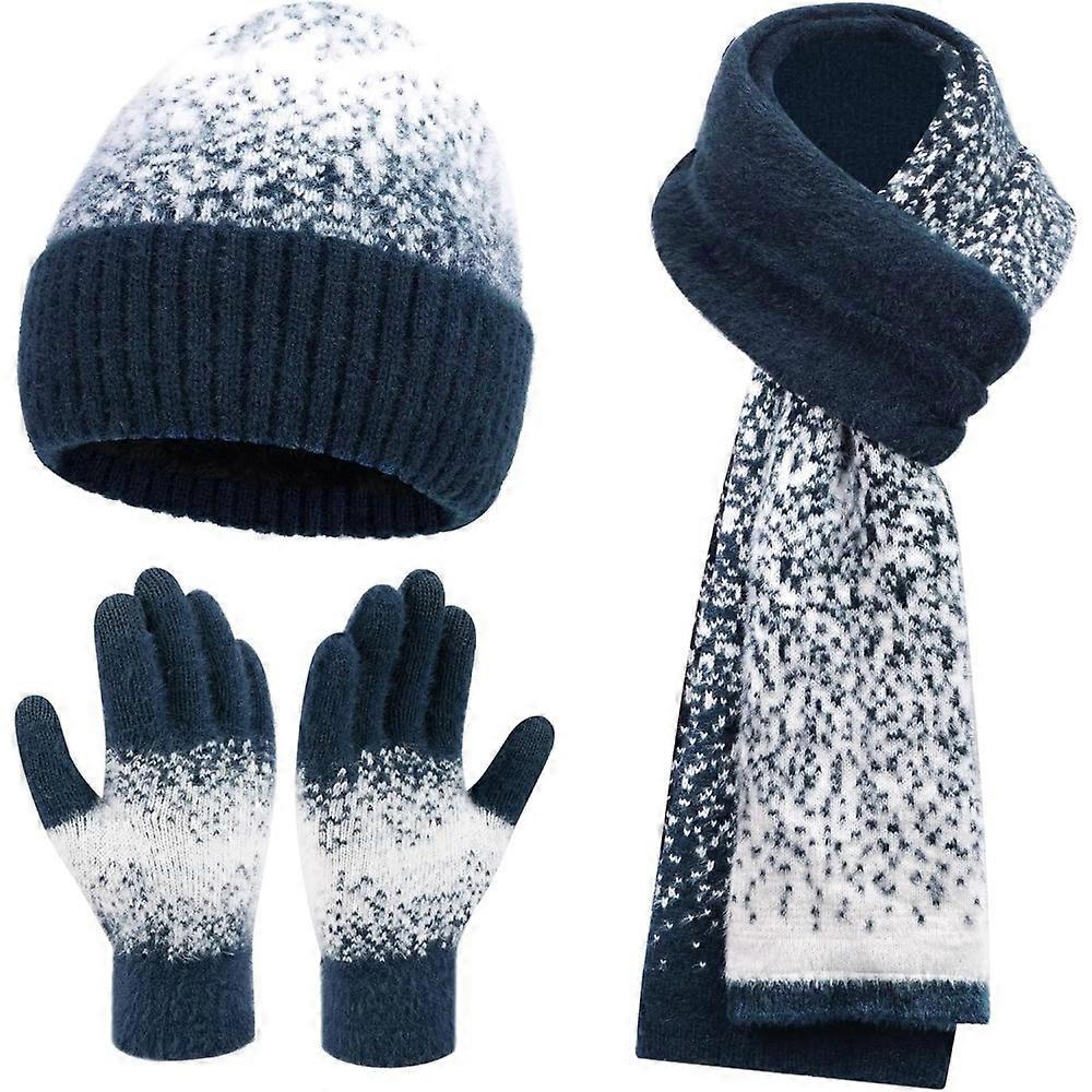 Womens Winter Knit Beanie Hats and Touchscreen Gloves Long Scarf Set with Warm Fleece Lined Skull Caps Scarves for Women