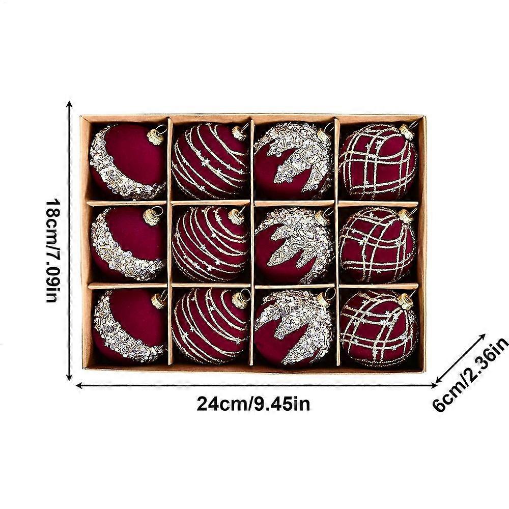12Pcs Velvet Christmas Balls Bulk Retro Flocked Christmas Tree Ball Ornaments Plastic Balls Xmas Decorative Hanging Ornaments