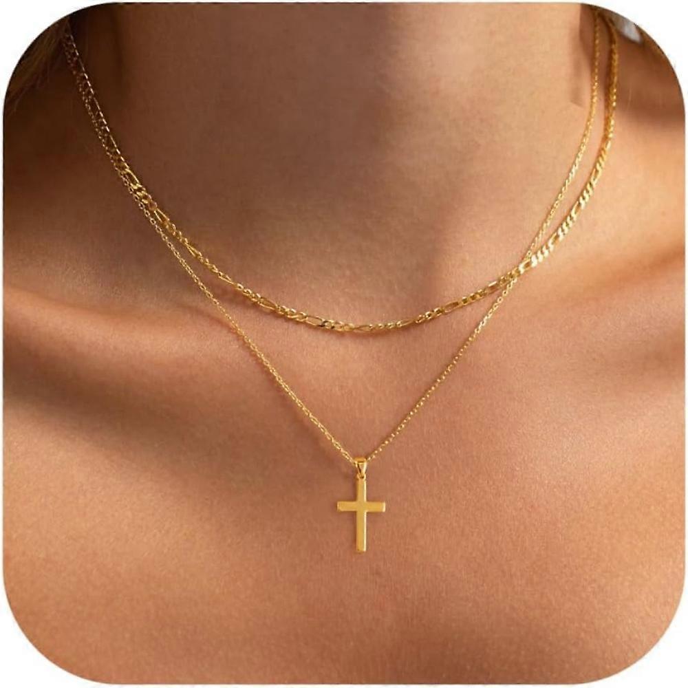 Cross Necklace for Women Dainty 14K Real Silver Gold Plated Layered Cross Pendant Necklace Stack Simple Trendy Cute Charm Choker