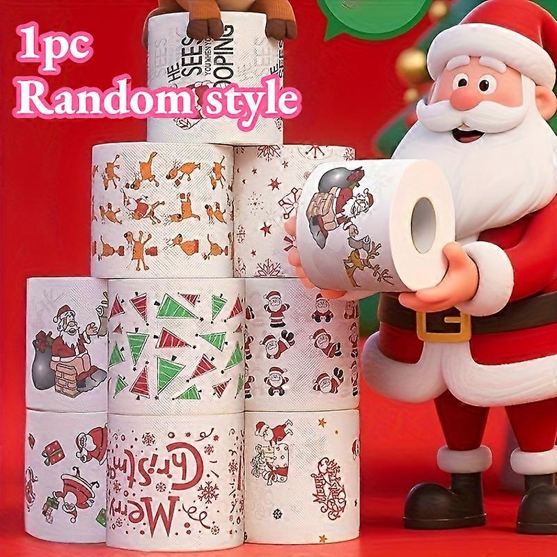1/9Rolls Random Pattern Christmas Toilet Paper - Festive Holiday Themed Napkins for Home/Party, Affordable Christmas Decor