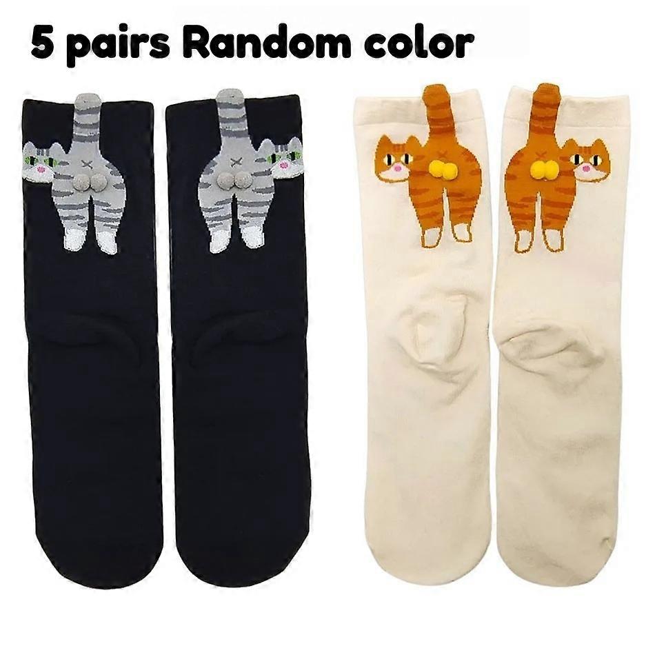 1/2/5 Pairs Cartoon Cat Crew Socks, Cotton Breathable Mid Calf Socks for Men, Comfortable Novelty Socks for Cat Lovers, Unisex