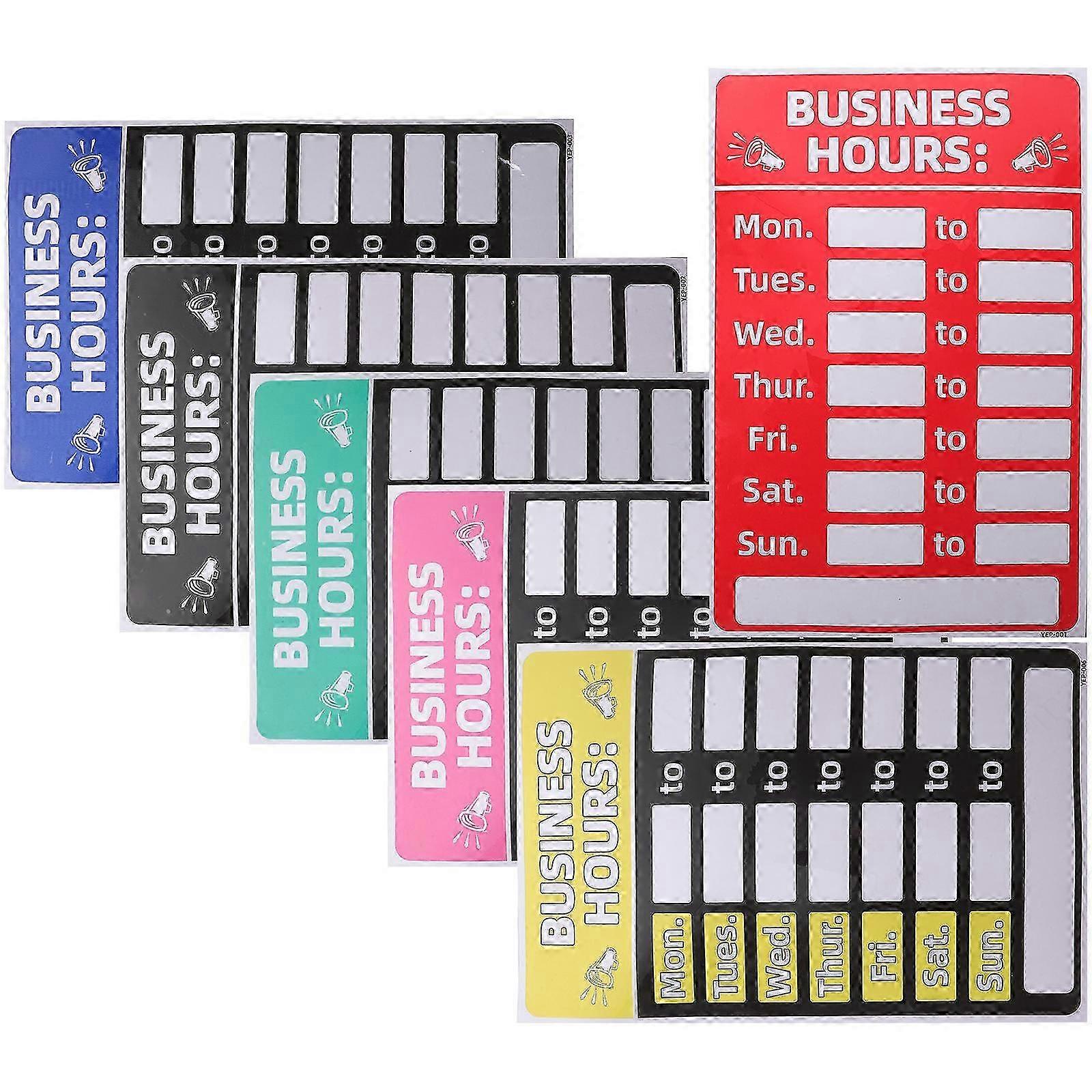 Store Hours Signs, PVC Oil-Proof Business Opening Time Stickers with Numbers for Restaurant Door Window, 6Pcs Set