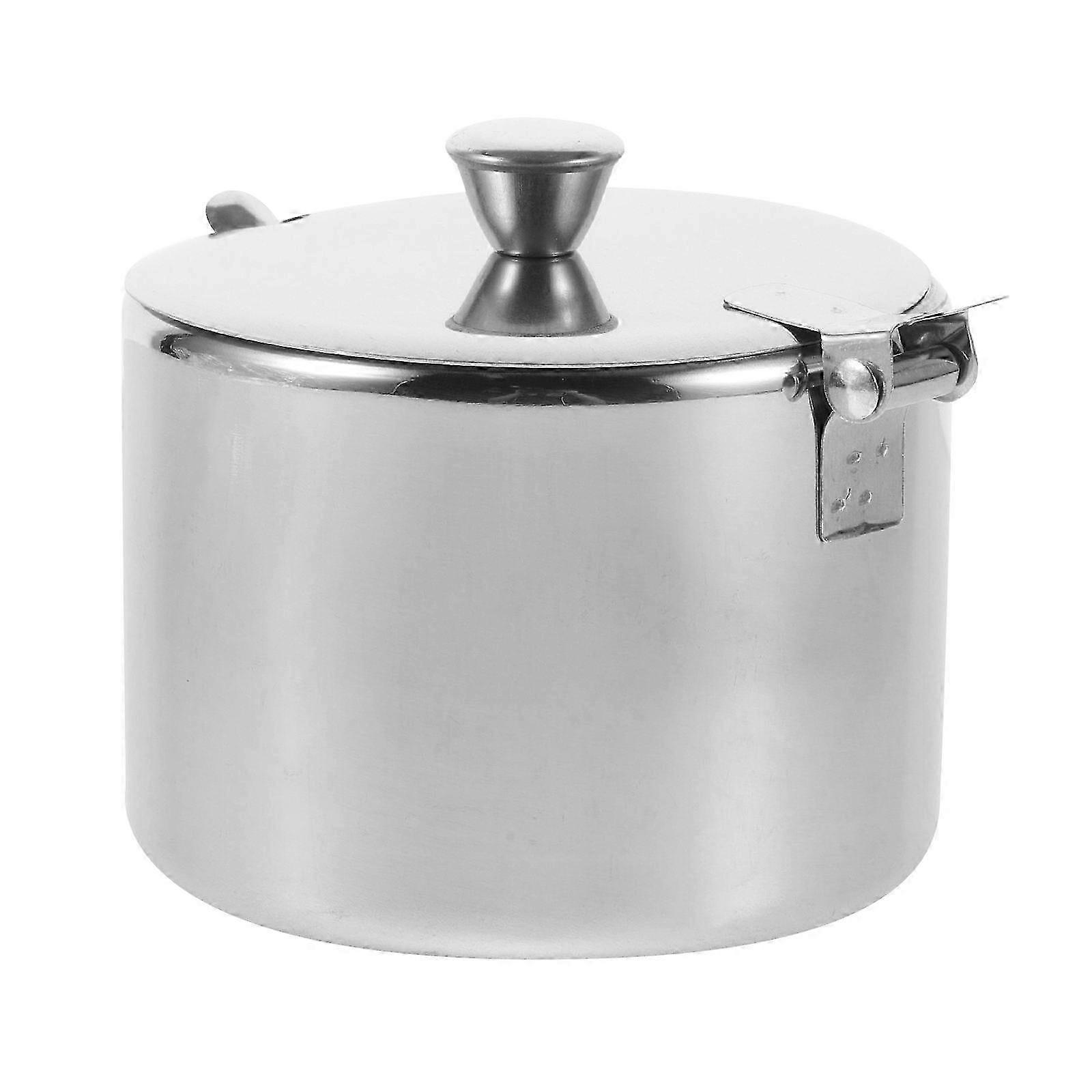Stainless Steel Seasoning Pot with Lid, 850ml Round Spice Storage Container for Kitchen Countertop, Salt Sugar Flour Jar, 8.5x8.5x7 cm, 1-Pack