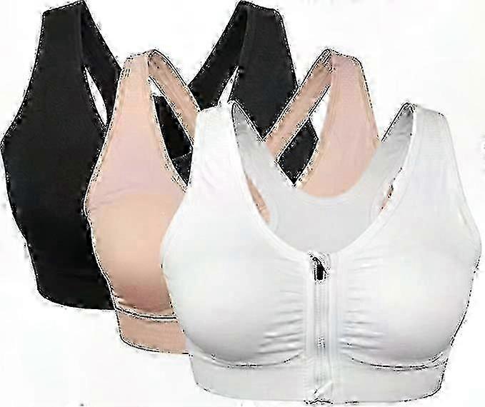 3-Pack Women's Front-Zip Sports Bra - Non-Wired Post-Workout Bra with Removable Pads - Comfortable & Supportive