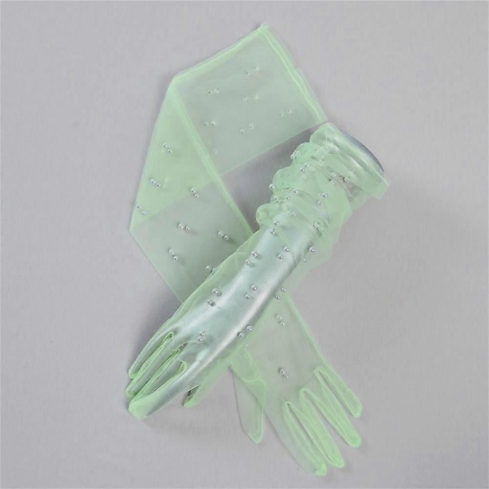 New Mesh Bridal Gown Mittens Pearl Long Banquet Gloves Performance Gloves Party Dress