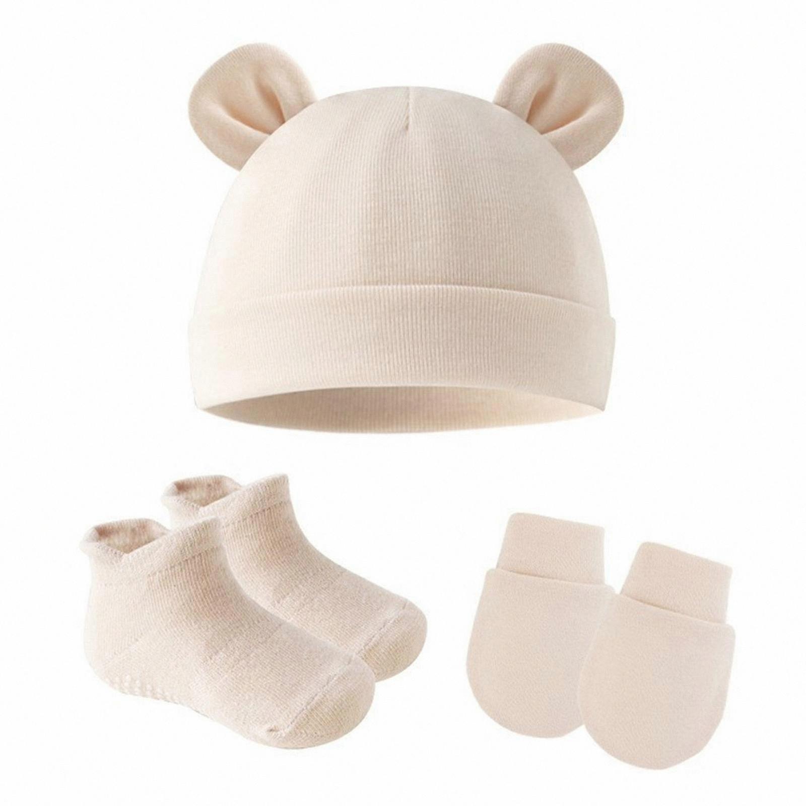 Comfortable Newborn Baby Hat with Scratch Proof Mittens & Socks 0-3 Months for Warmth, Orange & Pink