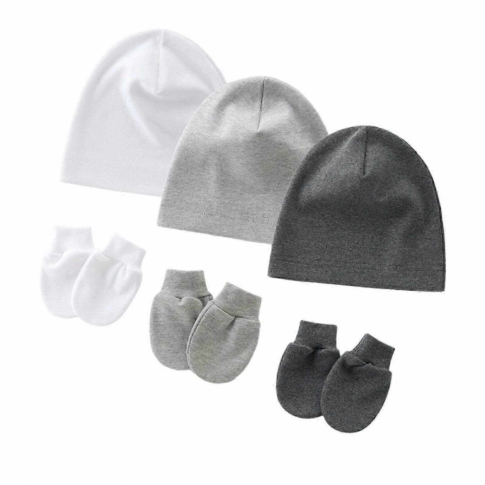 3-Pack Newborn Baby Hats & Mittens, Soft Fabric, Multiple Colors, Gentle Protection for 0-1 Month Infants
