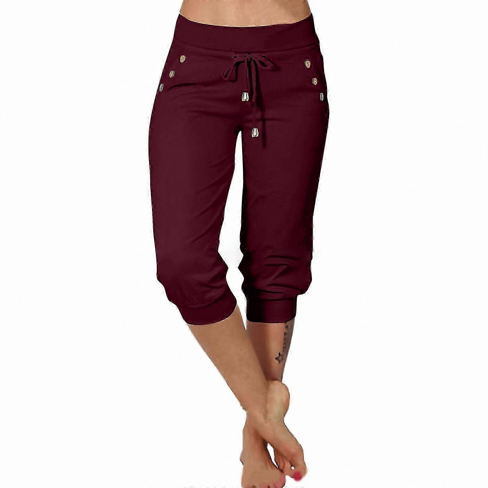 Women's High-Waist Yoga Cropped Pants, Moisture-Wicking Polyester, Rose Red XXXL for Active Lifestyle