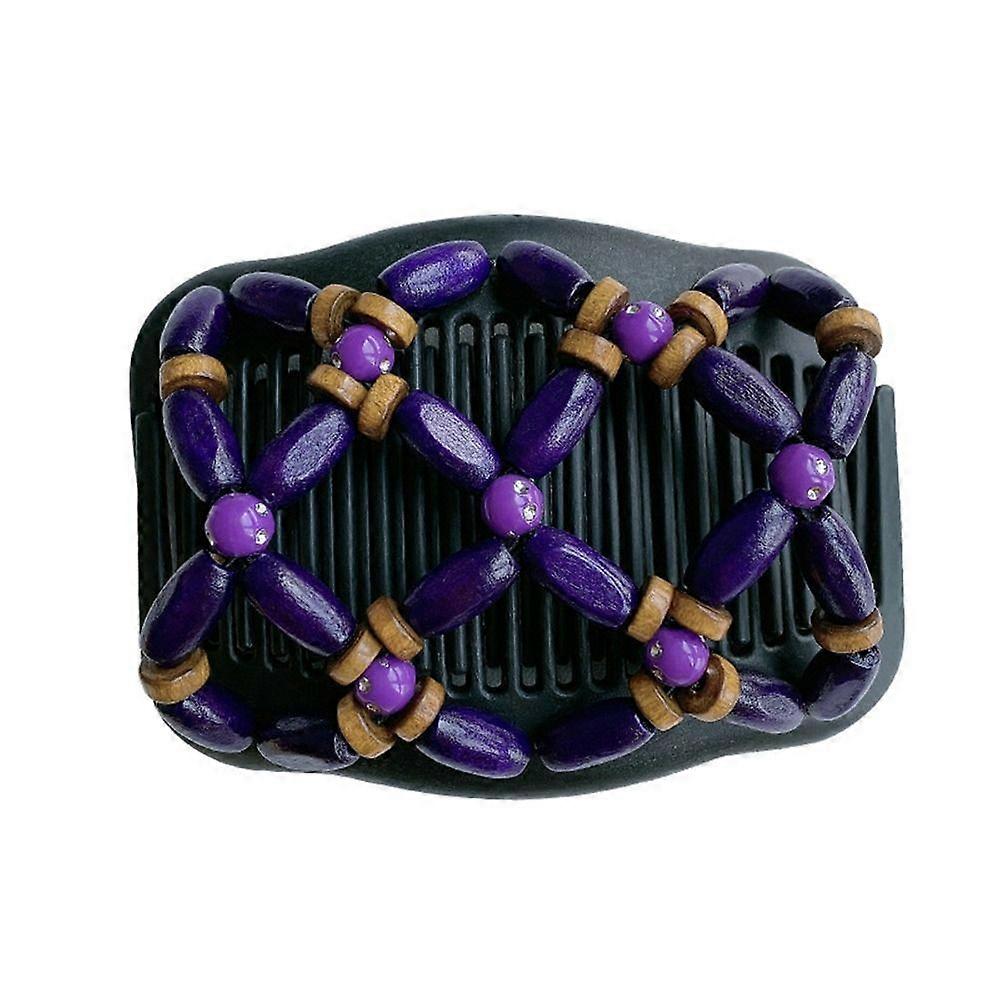Double Row Comb Women's Magic Wood Beads Hair Comb Double Slide Stretch Hair Clip Hairpin Hairbrush
