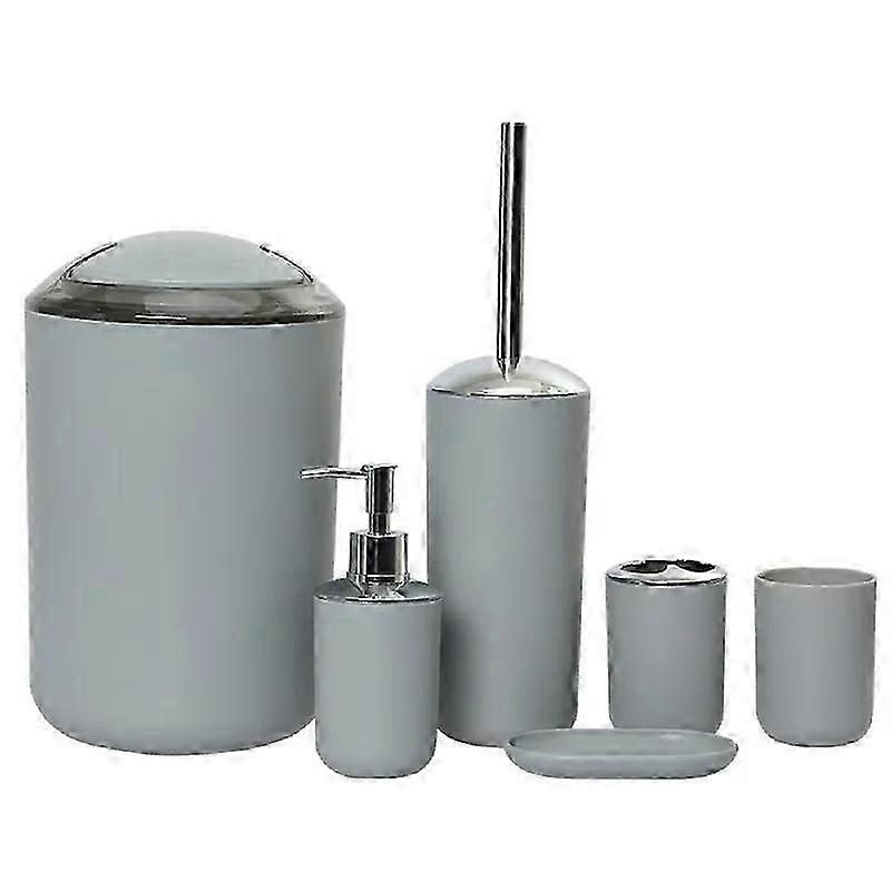 Bathroom six-piece set, PP material durable, including trash can and toilet brush, bathroom cleaning supplies