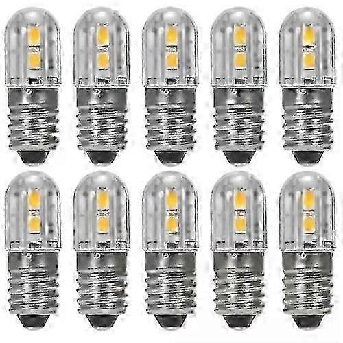 ①. E10 6V AC DC 2W LED screw base bulb light source lamp light bulb ②. Item ③. Type: E10 light bulb ④. Color: warm white/white; 3000K/6500K ⑤. Light source: LED ⑥. 4x 5730 SMD installed ⑦. Base: E10 screw base ⑧. Lifespan: approx. 10,000 hours ⑨. Power: approx. 2 watts ⑩. Bulb weight: 2g ⑪. Dimensions: approx. length 28.5mm, diameter 10.12mm ⑫. Bulb diameter at thickest point approx. 12mm, total length approx. 29mm ⑬. Application: e.g. Herrnhuter Star all sizes with E10 base, flashlights, low-voltage lighting and much more. ⑭. Scope of delivery: ⑮. 2x or 6x or 10x LED bulb E10