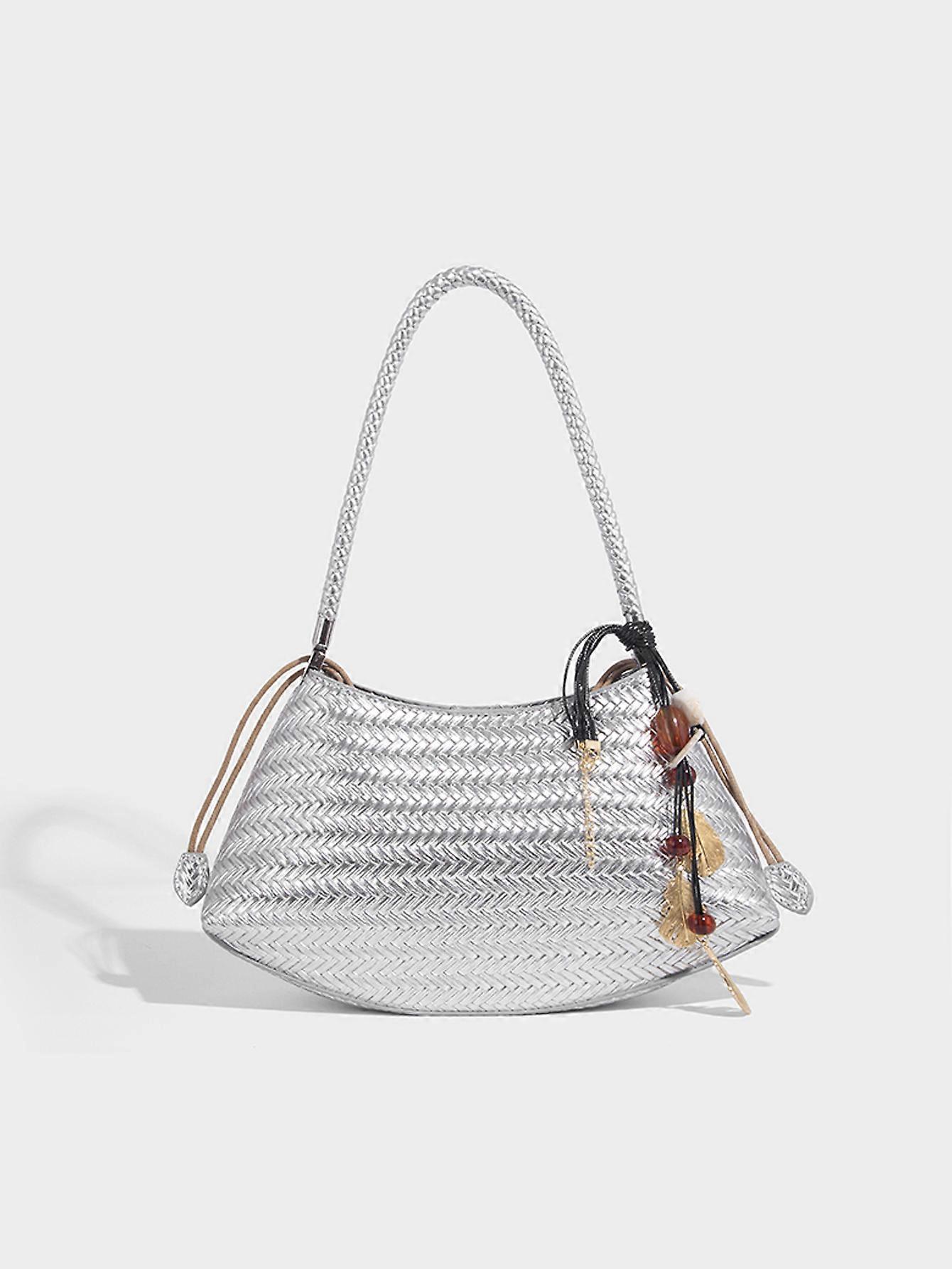 French woven vegetable basket bag, women's pu leather single-shoulder bag, retro handcrafted bag, ins style