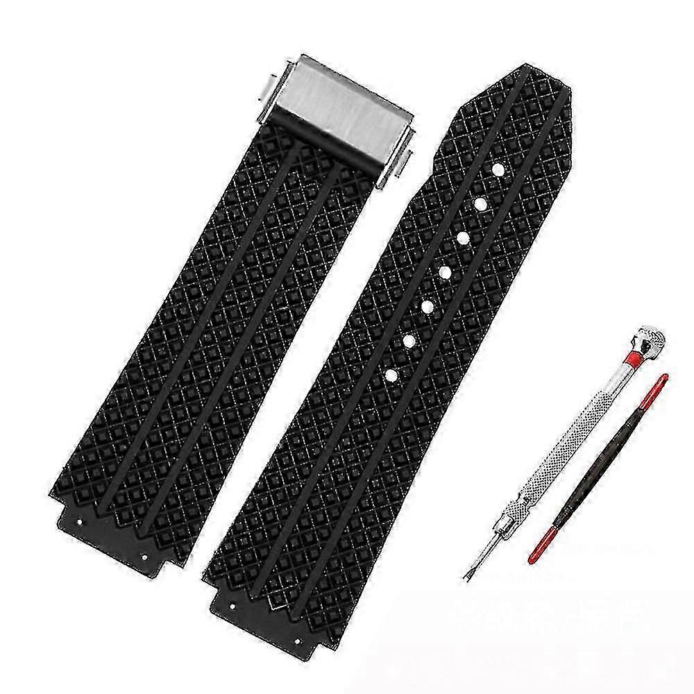 Watchband For Hublot Big Bang Silicone 25*19mm Waterproof Men's Watch Strap Chain Watch Accessories Rubber Bracelet Wristband-blue A Black_ggxx