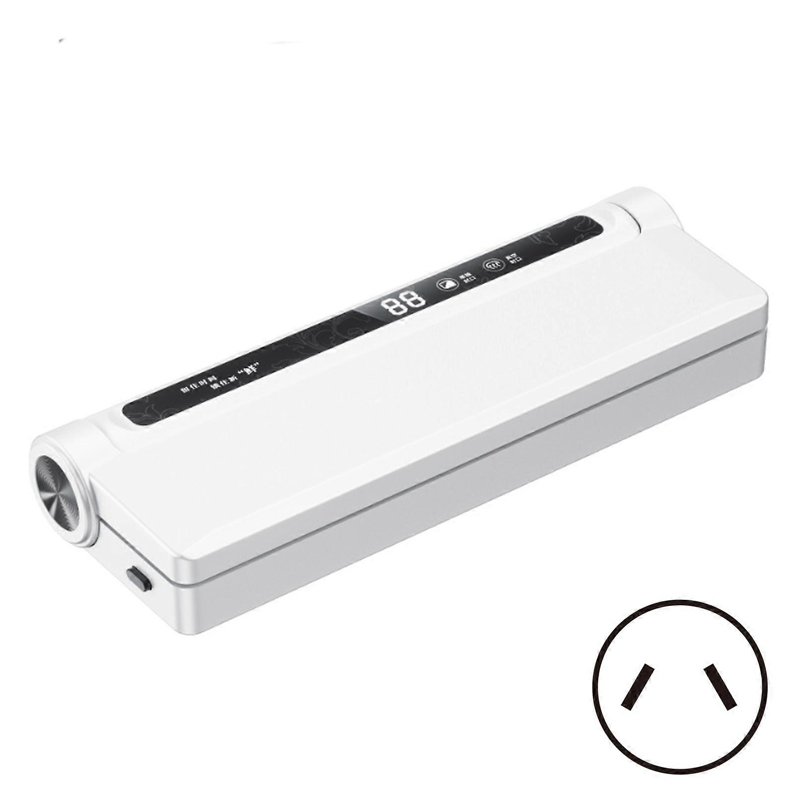 Features: Quality Materials: The vacuum sealing machine is made of quality materials, which is sturdy and wear-resistant and can be used for a long time. Long food preservation time: This vacuum sealing machine has strong suction and can quickly vacuum sealed various foods. Keep food fresher more effectively. Easy to operate: This vacuum sealing machine has a simple interface, one-click airs extraction, and easy operation. The entire process from pumping to sealing requires no manual intervention. Safe to use: This vacuum sealing machine adopts a double-sided lock design and double-layer sealing, which is reliable and safe. It also has an independent power cords design, which is safe and clutter-free. Wide Application: This vacuum sealing machine can sealed dry and wet food, and is suitable for steak, meat, seafood, fruits, vegetables and other foods. Notice: 1.Actual color may be slightly different from the image due to different light effect 2.Please allow 1-3cm deviation due to manual measurement Description: Product Model: AD03 Rated Voltage: 220V Rated Power: 90W Rated Frequency: 50HZ Product Color: White Control Mode: Button Sealing Length: 210mm Package List: 1X Household Vacuum Sealer