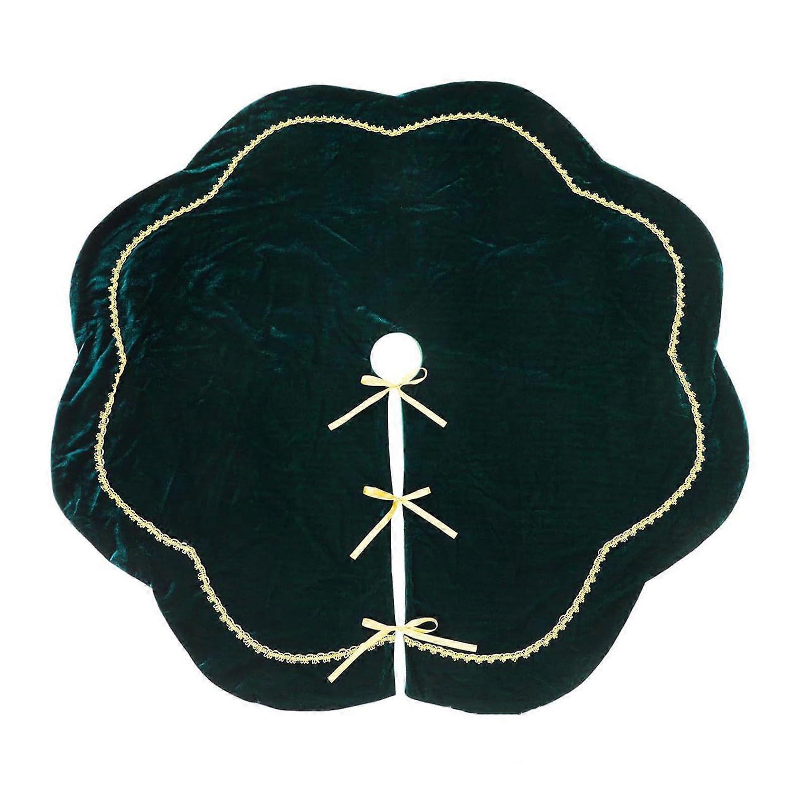 Christmas Tree Skirt Velvet Furry Scallop Tree Skirt with Gold Lace Trim for Rustic Xmas Holiday Home Indoor Party Decor Jikaix