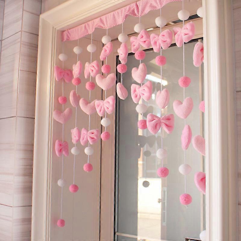 1 Set Arc Heart Star Bow Door Valance, Short Curtain with Tassel for Girls Room, Romantic Window Valance Pelmet, Pink Decor