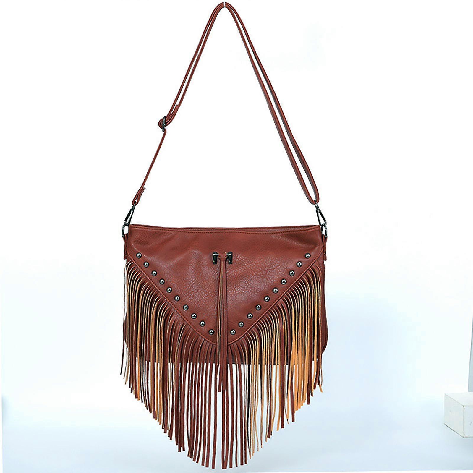 Europe and the United States rivet soft leather casual rivet tassel bag one shoulder oblique straddle bag for women large bag