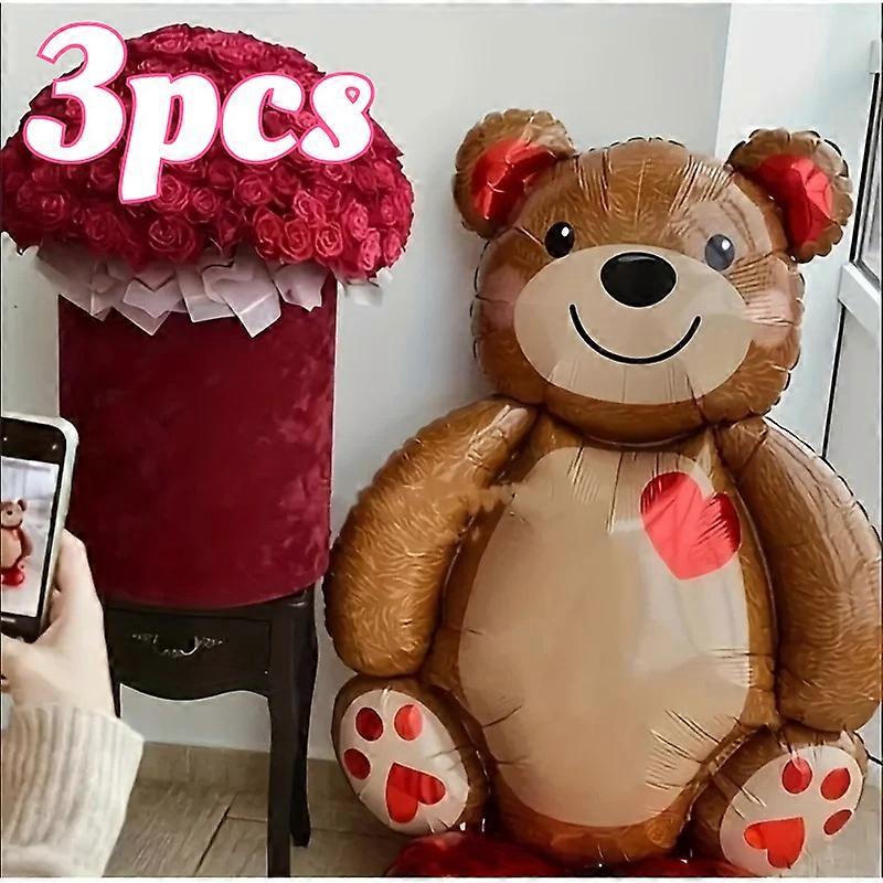 1/3pcs Large 3D Bear Aluminum Balloon, for Birthday Wedding Valentine's Day, Big Animal Theme Party Photo Background Decor