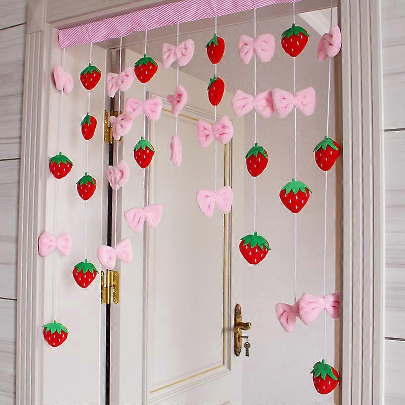1 Set Kawaii Strawberry Door Curtain, Plush Ball Valance for Christmas Valentine's Day, Cute Bedroom Partition & Window Decor