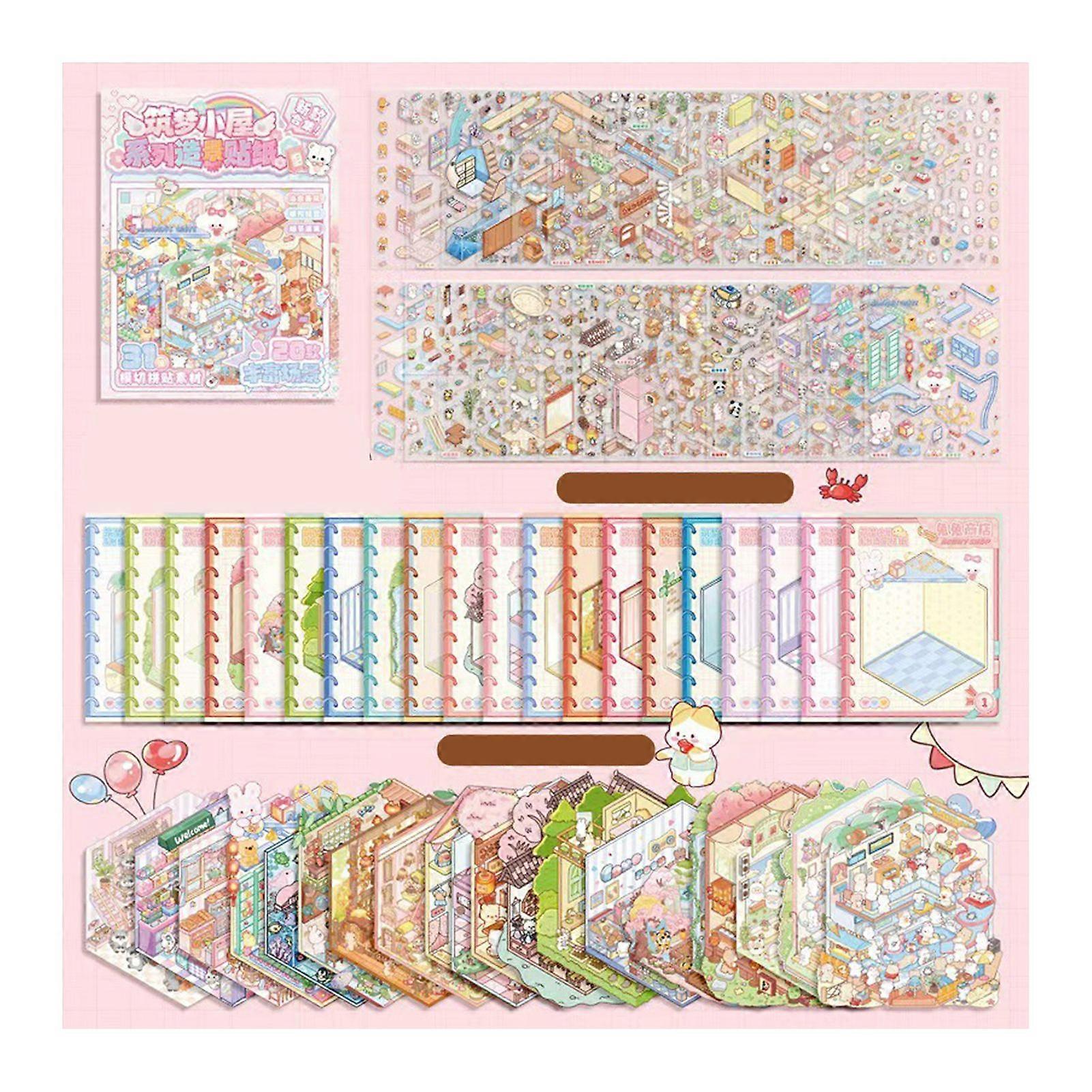 3D Scene Sticker Book Set for Kids Adults DIY Mini House Stickers Kit Reusable Kawaii Stickers for Home School Office Jikaix