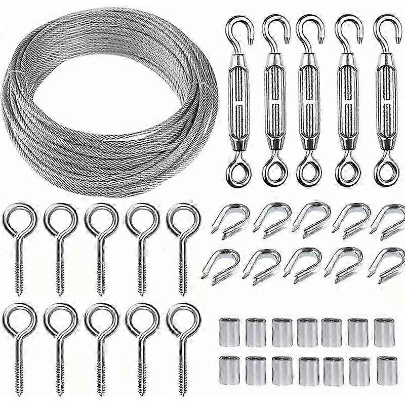30m 2mm Stainless Steel Wire Rope Kit with M5 Heavy Duty Tensioner for Fences, Guardrails & Gardens