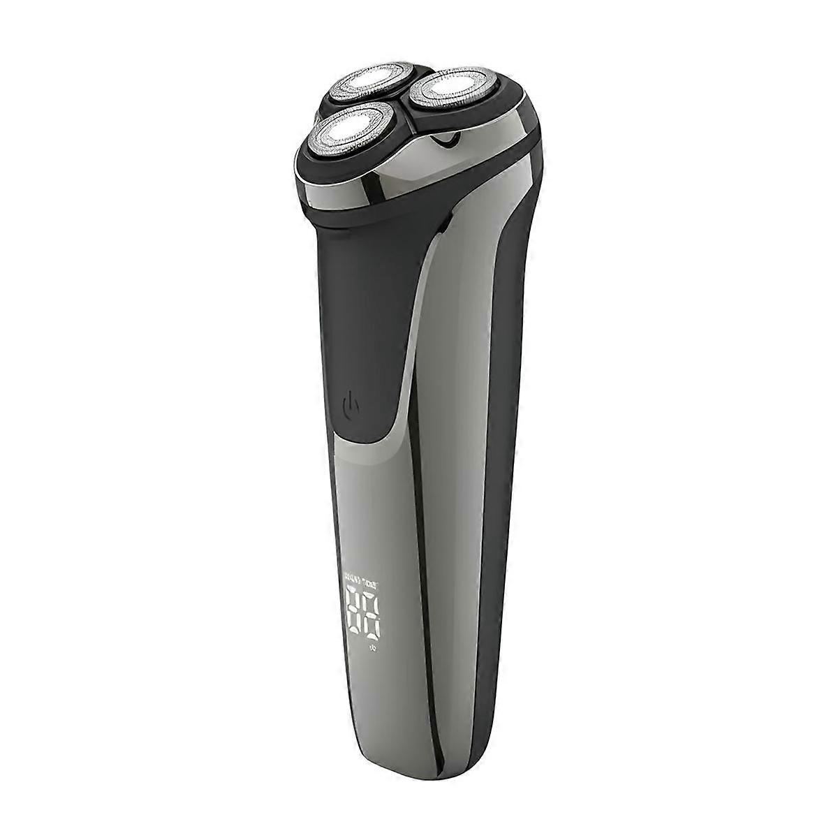 Smart Waterproof Rechargeable Electric Rotary Shaver with 3 Heads, Grey