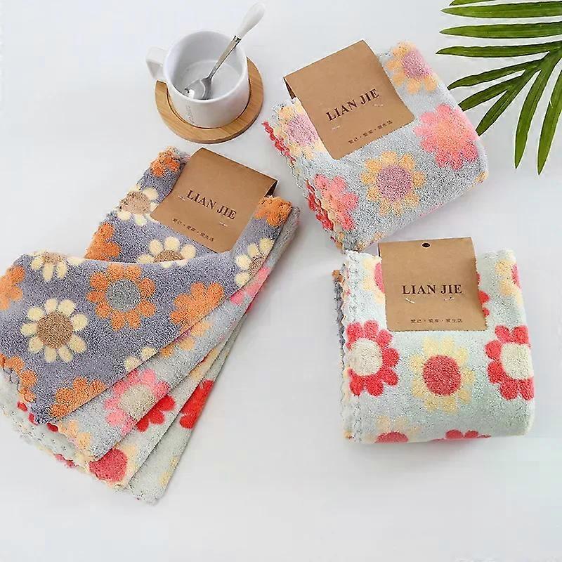 6Pcs Kitchen Cleaning Cloths Soft Absorbent Dishcloth Coral Fleece Sunflower Wiping Towel Rags Household Cleaning Cloth