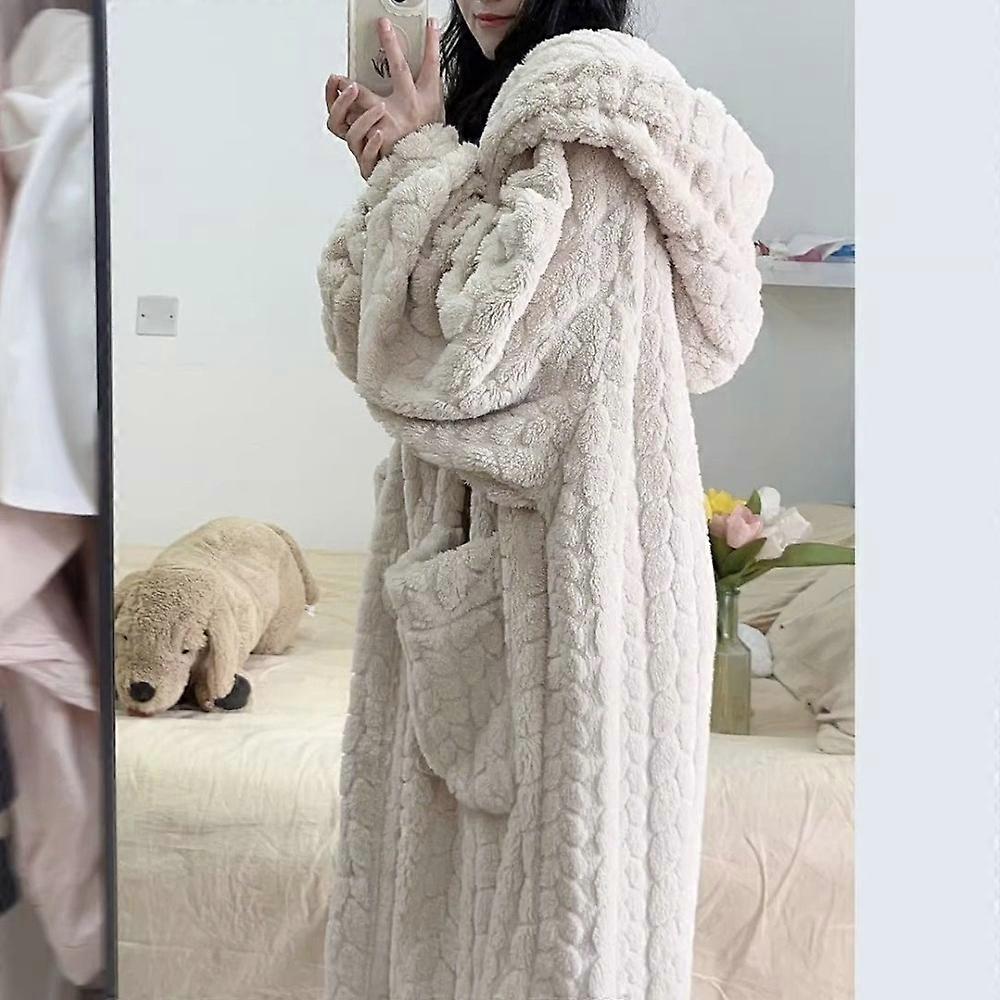 Kawaii Warm Winter Nightwear Cute Leisure Hooded Robes Soft Coral Fleece Nightgown