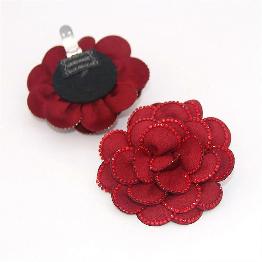 2PCS Manual Rhinestones Shoe Clips Fabric Art Flower Bride Shoes Decoration Shoe Charm Buckle High Heel