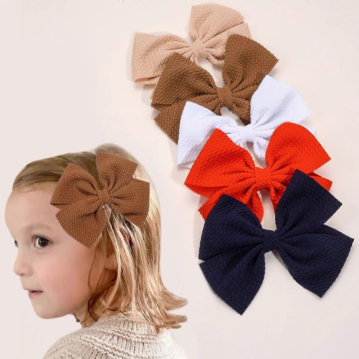 5pcs Classic Solid Color Hair Bow Ribbon Clips Hair Clips for Girls Large Bow Hairpin Hair Accessories Set Butterfly Hair Clip