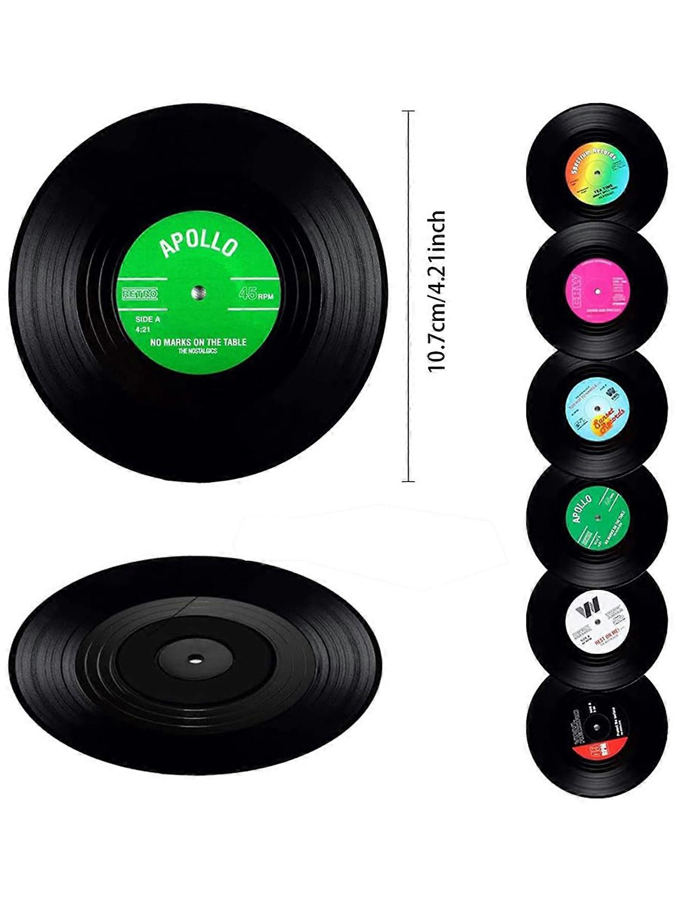 6 pieces/set of colored vinyl record disc coaster beverage vinyl record anti-slip silicone coaster set coffee table decoration