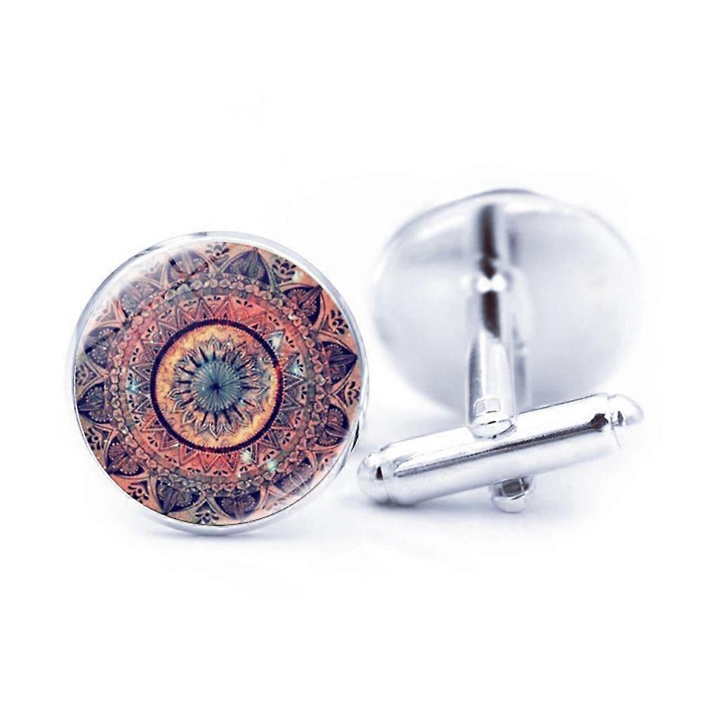 Clothing Accessories Alloy Glass Mandala Cufflinks Multicolor Flower Cufflinks for Mens Buddhist Meditation Men
