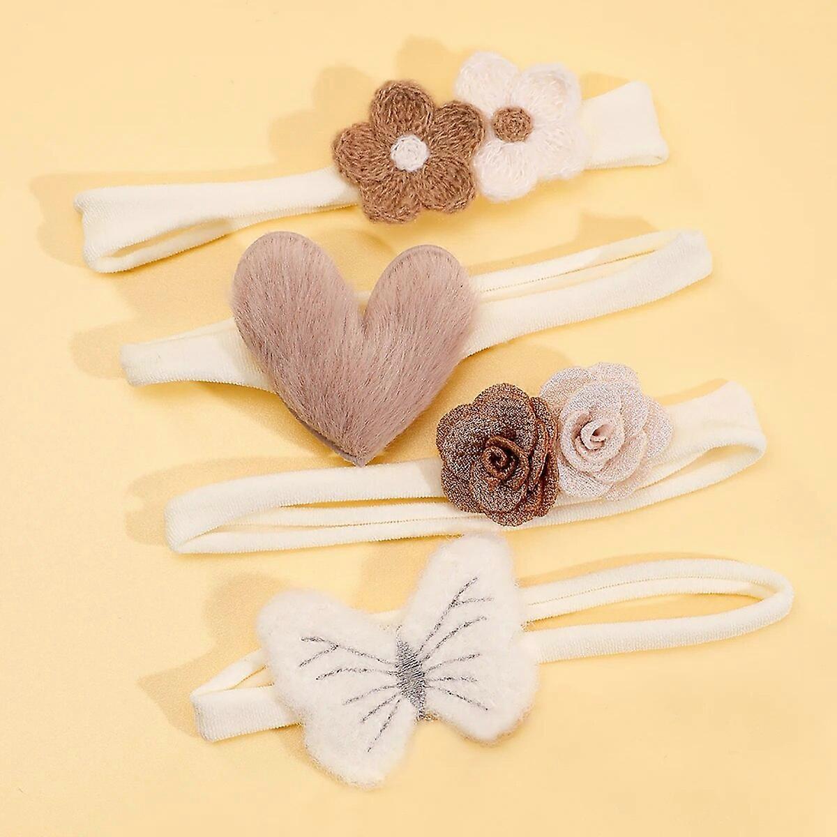 4PCS Heart Shape Bow Floral Design Toddler Headbands Baby Elastic Headbands Kids Hair Accessories Headbands for Baby Headwear